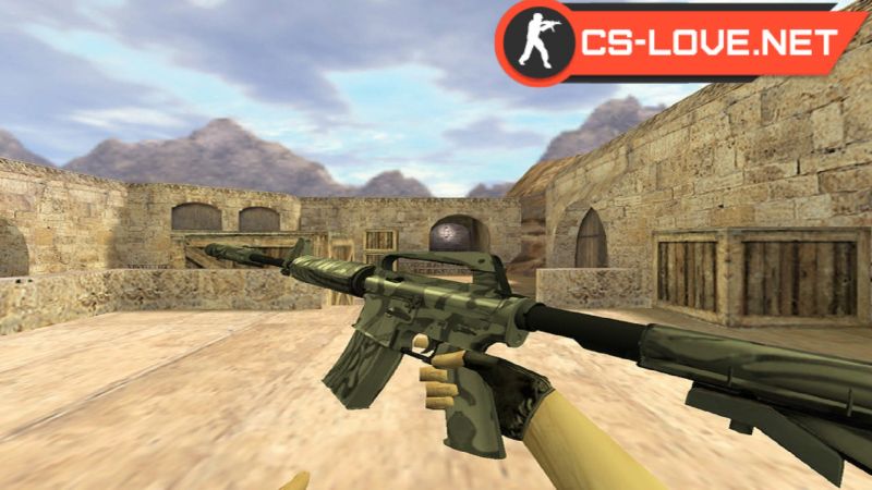 Прекрасная модель M4A1 для CS 1.6, которая была выполнена в камуфляжном стиле. Также стоит отметить, что данный скин имеет очень качественные текстуры и автоматическую анимацию осмотра в игре. Скачать можно с нашего сайта совершенно бесплатно и без какой-либо регистрации.