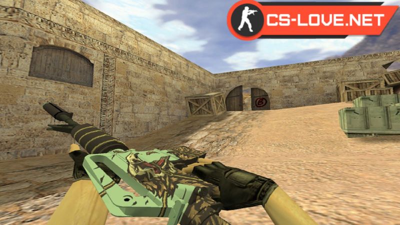 Разноцветная модель оружия M4A1 для CS 1.6, на которую был нанесён рисунок в виде орла. Также стоит отметить, что моделька имеет автоматическую анимацию осмотра, играть будет намного приятнее и интереснее. Скачать можно с нашего сайта совершенно бесплатно и без какой-либо регистрации.