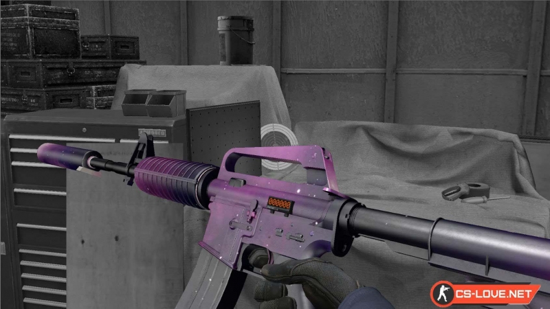 Модель M4A1-S "Туманность" для CS:GO. Бесшумный карабин M4A1 оснащен менее вместительным магазином, чем его аналог без глушителя, зато он обеспечивает более тихую стрельбу с меньшей отдачей и повышенной точностью. Основа окрашена в космические цвета.